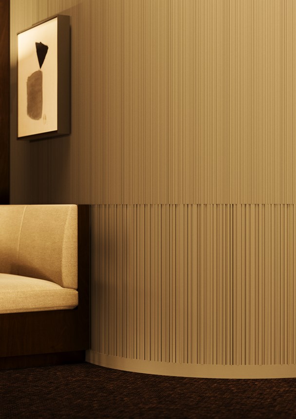ALLEGRETTINO FLEX переносить динамічний ритм дизайну ALLEGRETTINO на вигнуті поверхні, такі як закруглені стіни, стелі або колони. Завдяки частому повторенню лінійного асиметричного мотиву, стінова панель ALLEGRETTINO FLEX створює м'яко структуровану, витончену і вишукану поверхню, яка підкреслює архітектурний характер будь-якого інтер'єру. Дизайн, створений бельгійським дизайнером продуктів Бертраном Лежолі, грає світлом і тінню, додаючи глибини та руху навіть найнерівнішим поверхням. Ідеальне рішення для створення виразних тривимірних декорів як на плоских, так і на вигнутих поверхнях.