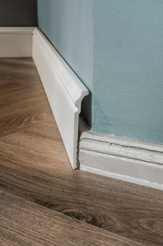 - Copre i battiscopa vecchi o danneggiati (ad esempio, in ceramica o in legno)