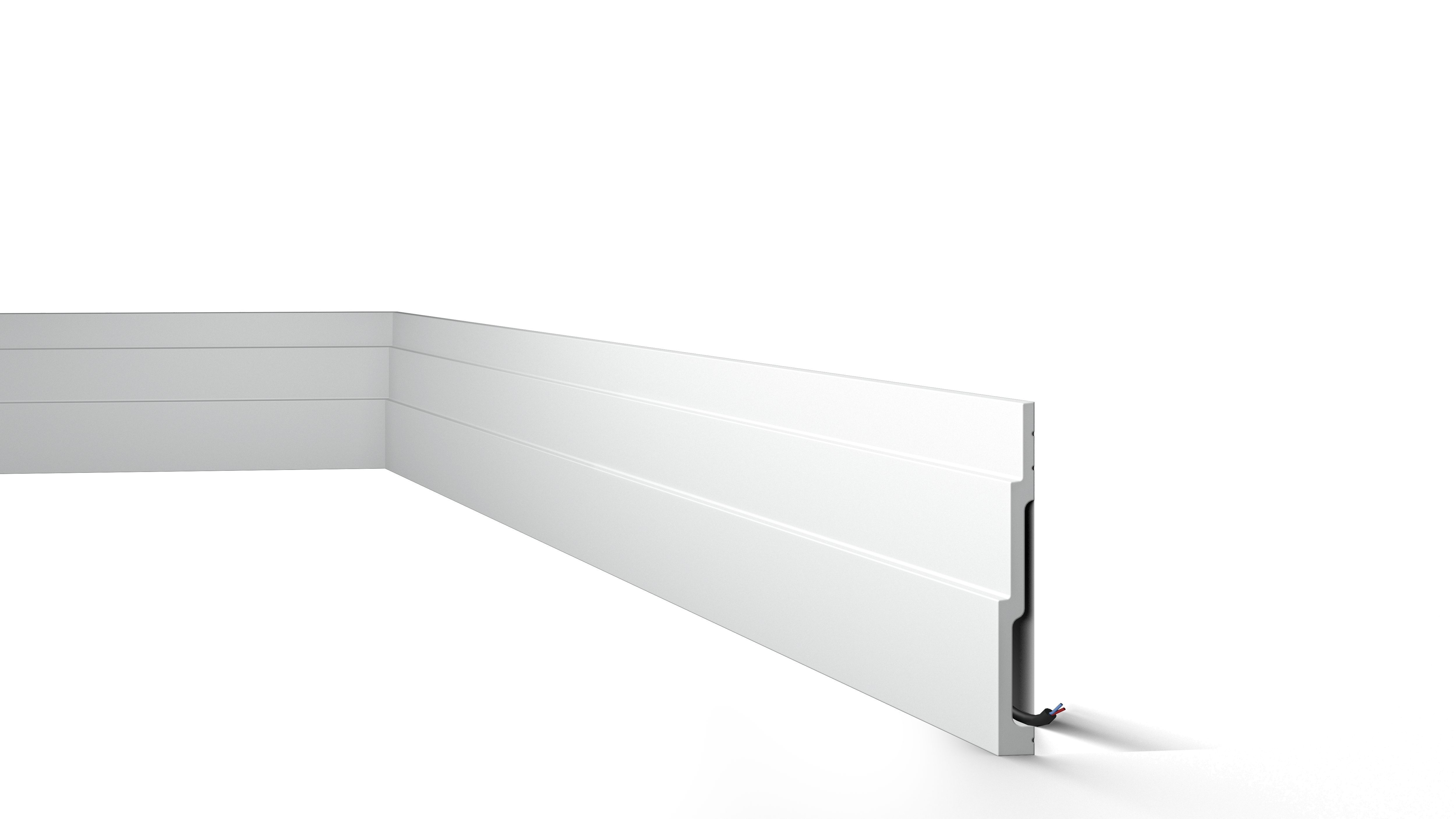 Карнизи, стінові молдінги та елементи, підлогові плінтуси, що поєднуються з прямим або прихованим освітленням - створені