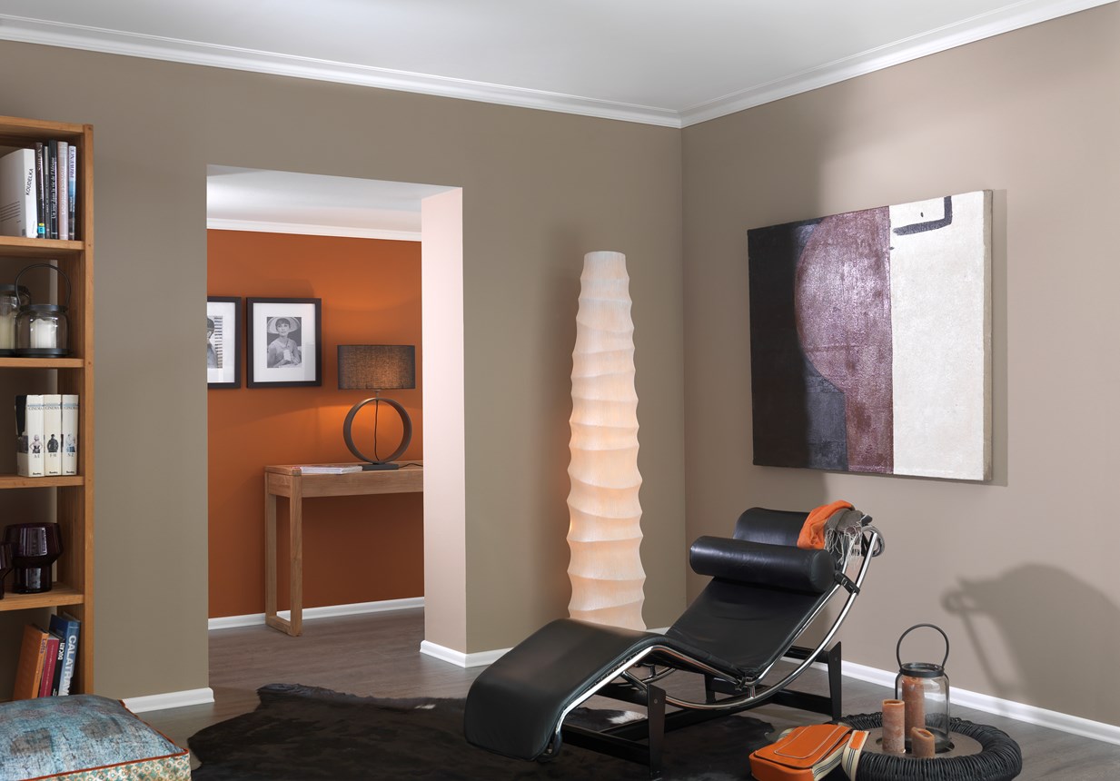 Dietro la cornice H NOMASTYL® è presente un piccolo spazio che permette di coprire piccoli cavi e imperfezioni. La posa in opera risulta facile e veloce grazie alla leggerezza delle modanature. Per fissare la cornice H è sufficiente incollare le sezioni in posizione con il collante ADEFIX®.