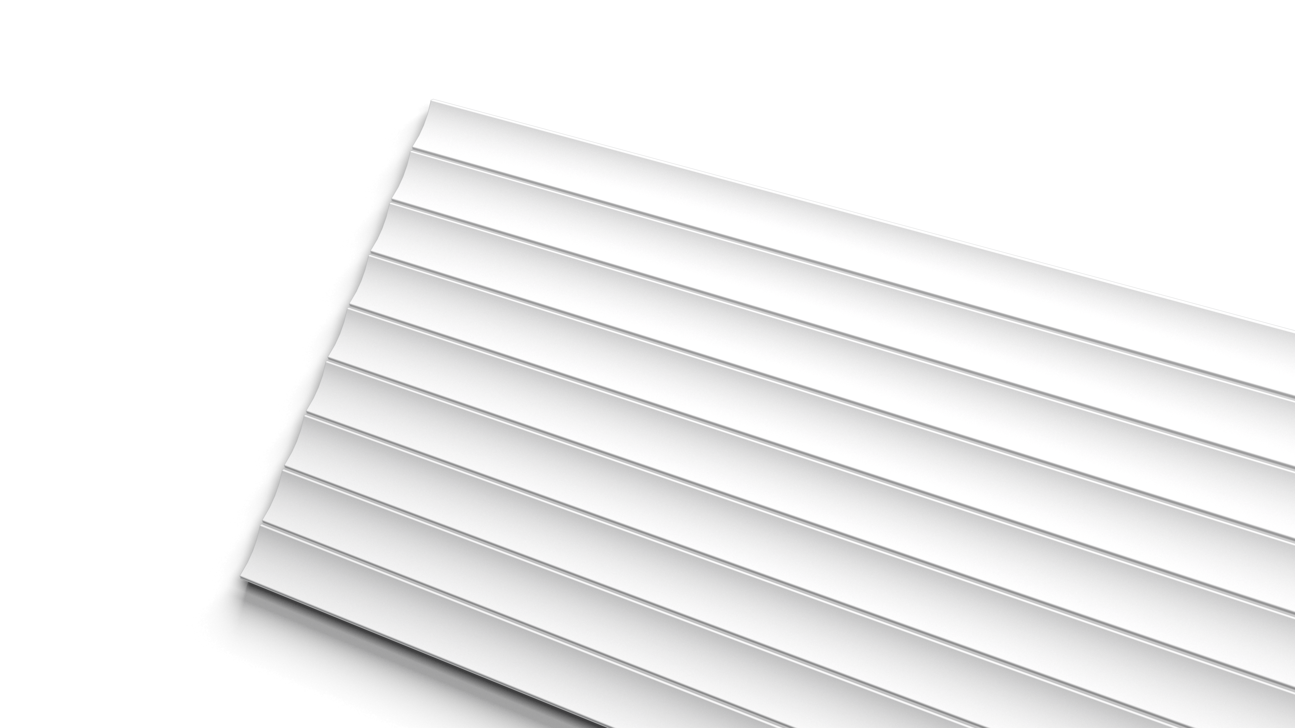 Виготовлена з полістиролу високої щільності (HDPS), панель MEZZALUNA S довжиною 2600 мм є ударостійкою та водонепроникною, що робить її ідеальною для будь-якої кімнати, включаючи більш вологі приміщення, такі як ванні кімнати або кухні. Кожна панель має заводське грунтування і готова до фарбування в колір на ваш вибір. Для досягнення оптимальних результатів використовуйте клей ADEFIX® PLUS. Під час монтажу не потрібно склеювати панелі між собою, що дозволяє отримати чисту і безперервну поверхню.