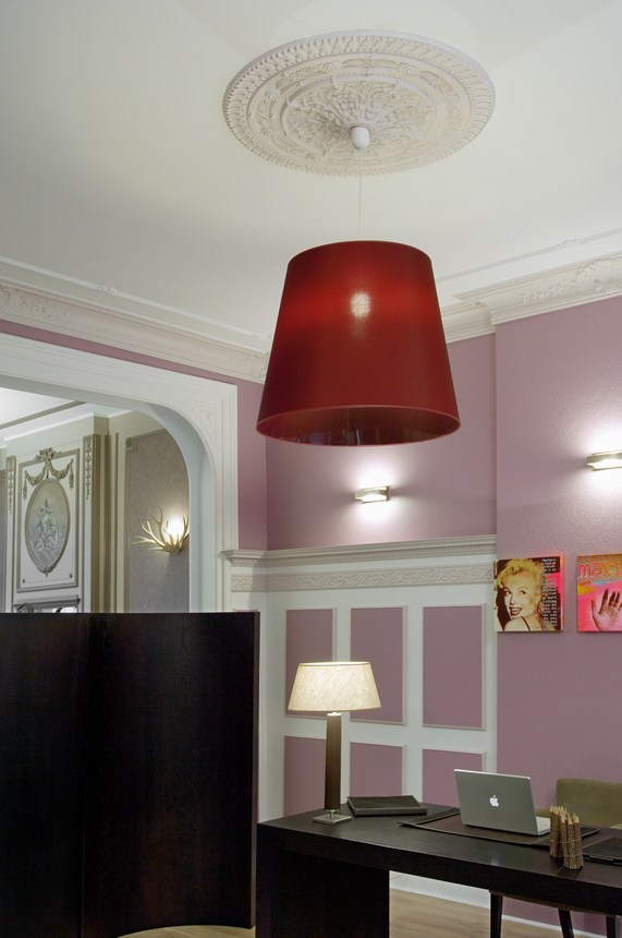 La modanatura Z41 presenta una forma decorativa ma anche funzionale in quanto dispone di spazio sufficiente per nascondere i cablaggi o le transizioni. Il fissaggio di queste leggere cornici alla parete e al soffitto richiede solo la colla. La modanatura è già primerizzata e pronta per la verniciatura finale.