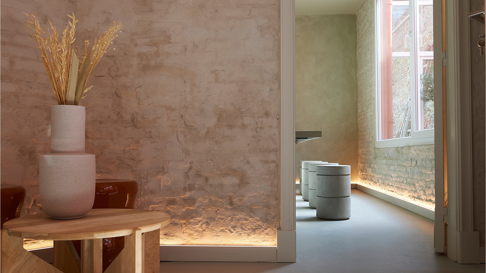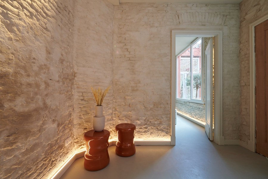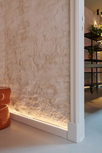 Добра локація потребує почуття витончености. Щоб якісно оформити відкриту цегляну стіну в чарівній старовинній будівлі, Анук вирішила скористатися особливою панеллю: світлопанель IL10 WALLSTYL® із вбудованою LED-панеллю дуже збагатила дизайн. Завдяки м’якому освітленню «голі» стіни перетворюються в головну деталь інтер’єру, створюючи теплу та затишну атмосферу в приміщенні.